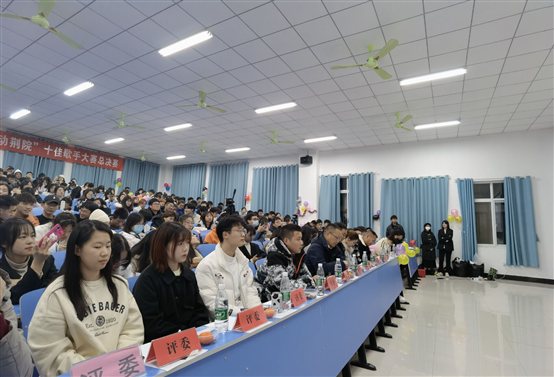 在上一届“十佳歌手冠军”李子昂的精彩开场歌曲《我们俩》后,比赛正式开始。十位参赛选手事先抽签两两配对进行组合表演,各组选手准备充分、形式多样。值得一提的是,由管理学院工商62101的宋子瑶和机械工程学院机械62101的袁泉带来的《因为爱情》,两人互动充分加上现场泡泡的点缀将全场气氛推向了高潮。在五组选手表演结束后,评委指出了相应的优缺点并在全场的期待下由各个评委进行现场抽取十位幸运观众赠送小礼品。