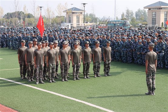 付秋峰副校长对全体新生提出三点要求,一是端正态度认真参与,把学校当成军营;二是认真训练,体会军人的优良作风和无私奉献的精神;三是攻坚克难,通过本次军训磨练自身的意志。